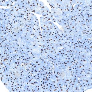 | IHC检测CREB蛋白(货号 GB15236). 样品: 大鼠肝, 4%多聚甲醛 (货号G1101) 固定12-24小时. 抗原修复: 抗原修复仪 (货号 ARI-4),Tris-EDTA抗原修复液(pH 9.0) (货号G1203), 水浴100℃, 25分钟. —抗: 1: 1500稀释, 4℃ 孵育过夜. 二抗: S-vision免疫组化多聚二抗(山羊抗小鼠), 即用型(货号G1301), 室温孵育20分钟. |