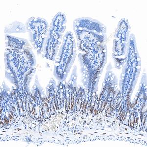 | IHC检测CREB蛋白(货号 GB15236). 样品: 小鼠小肠, 4%多聚甲醛 (货号G1101) 固定12-24小时. 抗原修复: 抗原修复仪 (货号 ARI-4),Tris-EDTA抗原修复液(pH 9.0) (货号G1203), 水浴100℃, 25分钟. —抗: 1: 1500稀释, 4℃ 孵育过夜. 二抗: S-vision免疫组化多聚二抗(山羊抗小鼠), 即用型(货号G1301), 室温孵育20分钟. |
