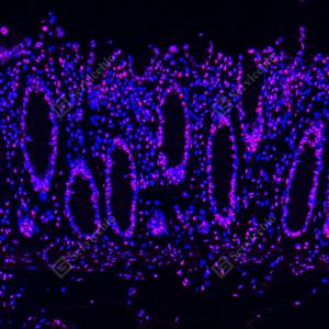 | IF检测CREB蛋白(货号 GB15236)(红色). 样品: 小鼠结肠, 4%多聚甲醛 (货号G1101) 固定12-24小时. 抗原修复: 抗原修复仪 (货号 ARI-4),Tris-EDTA抗原修复液(pH 9.0) (货号G1203), 水浴100℃, 25分钟. 封闭: 3% BSA(货号GC305010)的PBS溶液, 室温孵育30分钟. —抗: 1: 1500稀释, 4℃ 孵育过夜. 二抗: Cy3标记山羊抗小鼠IgG (H+L) (货号GB21301), 1: 300稀释, 室温孵育1小时. |