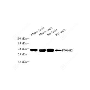 RPS6KB1(Ribosomal protein S6 kinase beta-1) is also named as STK14A, p70 S6KA and belongs to the S6 kinase subfamily. RPS6KB1 is a major substrate of MTOR and acts as a crucial effector of MTOR signaling pathway. It plays a key role in cell growth and proliferation by regulating INS sensitivity, metabolism, protein synthesis, and cell cycle. RPS6KB1 may play an important role in the progression of HCC and could serve as a potential molecular target for HCC therapy . RPS6KB1 is a 70 kDa protein and has 5 isoforms with the calculated molecular mass of 51-59 kDa produced by alternative initiation.