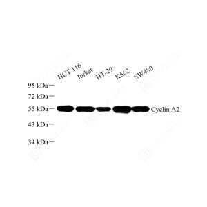 Cyclin A2 belongs to the highly conserved cyclin family, whose members are characterized by a dramatic periodicity in protein abundance through the cell cycle. Cyclins function as regulators of CDK kinases. Different cyclins exhibit distinct expression and degradation patterns which contribute to the temporal coordination of each mitotic event. In contrast to cyclin A1, which is present only in germ cells, this cyclin is expressed in all tissues tested. Cyclin A2 binds and activates CDC2 or CDK2 kinases, and thus promotes both cell cycle G1/S and G2/M transitions. Cyclin A2 could be phosphorylated during the G2/M.