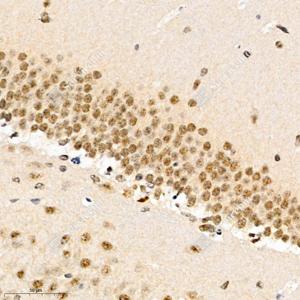 IHC检测Cyclin A2蛋白(货号 GB111132). 样品: 小鼠脑, 4%多聚甲醛 (货号G1101) 固定12-24小时. 抗原修复: 柠檬酸抗原修复液(干粉, pH 6.0) (G1201), 98℃, 20分钟. —抗: 1: 600稀释, 4℃ 孵育过夜. 二抗: HRP标记山羊抗兔IgG (H+L) (货号GB23303), 1: 200稀释, 室温孵育1小时. |