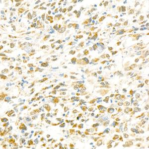 IHC检测TPX2蛋白(货号 GB111226). 样品: 人肝癌, 4%多聚甲醛 (货号G1101) 固定12-24小时. 抗原修复: 柠檬酸抗原修复液(干粉, pH 6.0) (G1201), 98℃, 20分钟. —抗: 1: 200稀释, 4℃ 孵育过夜. 二抗: HRP标记山羊抗兔IgG (H+L) (货号GB23303), 1: 200稀释, 室温孵育1小时. |