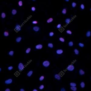 | ICC检测Cdc20B蛋白(货号 GB115217)(红色). 样品: Hela细胞, 4%多聚甲醛 (货号G1101) 固定20分钟. 封闭: 3% BSA(货号GC305010)的PBS溶液, 室温孵育30分钟. —抗: 1: 200稀释, 4℃ 孵育过夜. 二抗: Cy3标记山羊抗兔IgG (H+L) (货号GB21303), 1: 300稀释, 室温孵育1小时. |