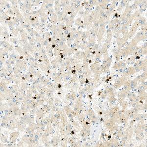 IHC检测CDKN2A/p14ARF蛋白(货号 GB115589). 样品: 人肝, 4%多聚甲醛 (货号G1101) 固定12-24小时. 抗原修复: Tris-EDTA抗原修复液(pH 9.0) (G1203), 98℃, 20分钟. —抗: 1: 200稀释, 4℃ 孵育过夜. 二抗: HRP标记山羊抗兔IgG (H+L) (货号GB23303), 1: 200稀释, 室温孵育1小时. |