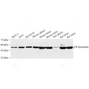 WB检测p50 dynamitin蛋白(货号 GB111192). 样品: 经RIPA裂解液(货号G2002)处理的蛋白质. 封闭: 封闭: 3%脱脂牛奶(货号GC310001)溶于TBST溶液, 室温孵育1小时. —抗: 1: 500稀释, 4℃ 孵育过夜. 二抗: HRP标记山羊抗兔IgG (H+L) (货号GB23303), 1: 5000稀释, 室温孵育1小时. |