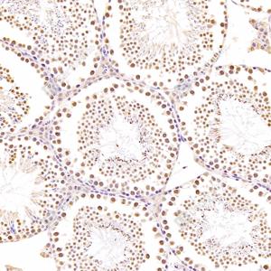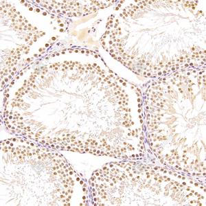 | IHC检测RanBP16蛋白(货号 GB112744). 样品: 小鼠睾丸, 4%多聚甲醛 (货号G1101) 固定12-24小时. 抗原修复: 柠檬酸抗原修复液(干粉, pH 6.0) (G1201), 98℃, 20分钟. —抗: 1: 300稀释, 4℃ 孵育过夜. 二抗: HRP标记山羊抗兔IgG (H+L) (货号GB23303), 1: 200稀释, 室温孵育1小时. |