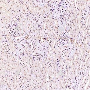 | IHC检测RanBP16蛋白(货号 GB112744). 样品: 小鼠肝, 4%多聚甲醛 (货号G1101) 固定12-24小时. 抗原修复: 柠檬酸抗原修复液(干粉, pH 6.0) (G1201), 98℃, 20分钟. —抗: 1: 300稀释, 4℃ 孵育过夜. 二抗: HRP标记山羊抗兔IgG (H+L) (货号GB23303), 1: 200稀释, 室温孵育1小时. |