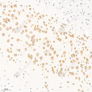 | IHC检测ACK1蛋白(货号 GB111439). 样品: 小鼠脑, 4%多聚甲醛 (货号G1101) 固定12-24小时. 抗原修复: 柠檬酸抗原修复液(干粉, pH 6.0) (G1201), 98℃, 20分钟. —抗: 1: 2000稀释, 4℃ 孵育过夜. 二抗: HRP标记山羊抗兔IgG (H+L) (货号GB23303), 1: 200稀释, 室温孵育1小时. |