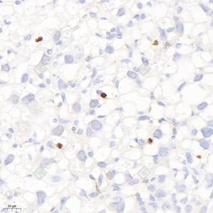 IHC检测D4 GDI蛋白(货号 GB113556). 样品: 小鼠脾, 4%多聚甲醛 (货号G1101) 固定12-24小时. 抗原修复: 柠檬酸抗原修复液(干粉, pH 6.0) (G1201), 98℃, 20分钟. —抗: 1: 6000稀释, 4℃ 孵育过夜. 二抗: HRP标记山羊抗兔IgG (H+L) (货号GB23303), 1: 200稀释, 室温孵育1小时. |