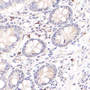 IHC检测MPPED1蛋白(货号 GB115094). 样品: 人结肠, 4%多聚甲醛 (货号G1101) 固定12-24小时. 抗原修复: Tris-EDTA抗原修复液(pH 9.0) (G1203), 98℃, 20分钟. —抗: 1: 600稀释, 4℃ 孵育过夜. 二抗: HRP标记山羊抗兔IgG (H+L) (货号GB23303), 1: 200稀释, 室温孵育1小时. |