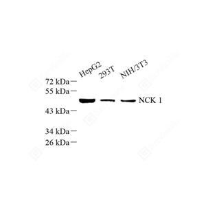 WB检测Nck蛋白(货号 GB11815). 样品: 经RIPA裂解液(货号G2002)处理的蛋白质. 封闭: 封闭: 3%脱脂牛奶(货号GC310001)溶于TBST溶液, 室温孵育1小时. —抗: 1: 500稀释, 4℃ 孵育过夜. 二抗: HRP标记山羊抗兔IgG (H+L) (货号GB23303), 1: 5000稀释, 室温孵育1小时. |
