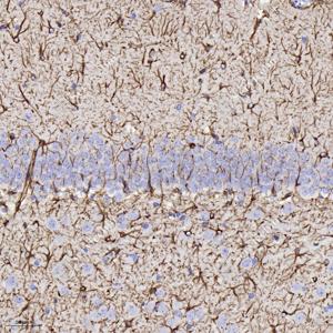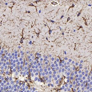 IHC检测GFAP蛋白(货号 GB12096). 样品: 小鼠脑, 4%多聚甲醛 (货号G1101) 固定12-24小时. 抗原修复: 柠檬酸抗原修复液(干粉, pH 6.0) (G1201), 98℃, 20分钟. —抗: 1: 600稀释, 4℃ 孵育过夜. 二抗: HRP标记山羊抗小鼠IgG (H+L) (货号GB23301), 1: 200稀释, 室温孵育1小时. |