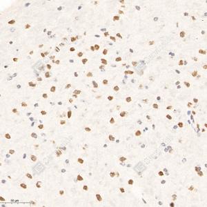 IHC检测Thyrotroph embryonic factor蛋白(货号 GB111653). 样品: 小鼠脑, 4%多聚甲醛 (货号G1101) 固定12-24小时. 抗原修复: Tris-EDTA抗原修复液(pH 9.0) (G1203), 98℃, 20分钟. —抗: 1: 700稀释, 4℃ 孵育过夜. 二抗: HRP标记山羊抗兔IgG (H+L) (货号GB23303), 1: 200稀释, 室温孵育1小时. |
