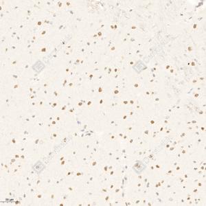 IHC检测Thyrotroph embryonic factor蛋白(货号 GB111653). 样品: 大鼠脑, 4%多聚甲醛 (货号G1101) 固定12-24小时. 抗原修复: Tris-EDTA抗原修复液(pH 9.0) (G1203), 98℃, 20分钟. —抗: 1: 700稀释, 4℃ 孵育过夜. 二抗: HRP标记山羊抗兔IgG (H+L) (货号GB23303), 1: 200稀释, 室温孵育1小时. |