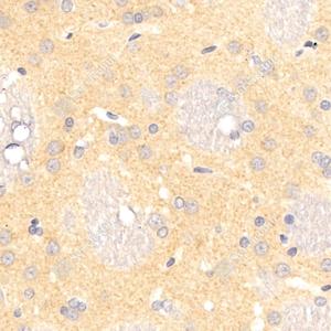 | IHC检测PPP2R2C蛋白(货号 GB113816). 样品: 大鼠脑, 4%多聚甲醛 (货号G1101) 固定12-24小时. 抗原修复: 柠檬酸抗原修复液(干粉, pH 6.0) (G1201), 98℃, 20分钟. —抗: 1: 500稀释, 4℃ 孵育过夜. 二抗: HRP标记山羊抗兔IgG (H+L) (货号GB23303), 1: 200稀释, 室温孵育1小时. |