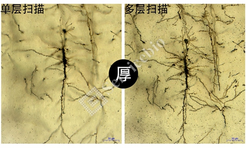 数字切片扫描是将物质化的玻片标本快速数字化的过程,能高效、高清晰、全信息的图像采集,是真正脱离显微镜的阅片方式。能长期保存,可满足临床、科研、教学等多种用途。高尔基染色的切片厚100um,通过扫描仪30层精细扫描能够清晰地显示神经纤维和树突棘的结构,获取更多的组织细胞信息。