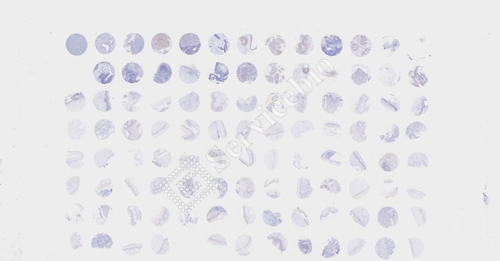 组织芯片免疫组化染色,是将多种组织以规则的微阵列方式排列于同一载体上,同时进行相同指标的免疫组化检测。组织芯片具有体积小, 标本信息含量大 , 一次性实验即可获大量结果。实验条件更易控制一致,减少批间批内误差,结果更准确。节省试剂,节省人力物力等优点。