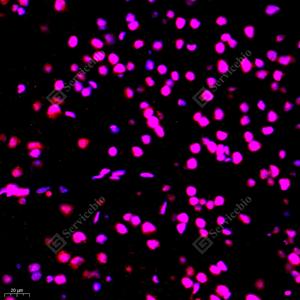 | IF检测Topoisomerase II alpha蛋白(货号 GB111293)(红色). 样品: 大鼠胸腺, 4%多聚甲醛 (货号G1101) 固定12-24小时. 抗原修复: Tris-EDTA抗原修复液(pH 9.0) (G1203), 98℃, 20分钟. 封闭: 3% BSA(货号GC305010)的PBS溶液, 室温孵育30分钟. —抗: 1: 1500稀释, 4℃ 孵育过夜. 二抗: Cy3标记山羊抗兔IgG (H+L) (货号GB21303), 1: 300稀释, 室温孵育1小时. |