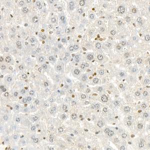 IHC检测ERCC1蛋白(货号 GB111374). 样品: 小鼠肝, 4%多聚甲醛 (货号G1101) 固定12-24小时. 抗原修复: Tris-EDTA抗原修复液(pH 9.0) (G1203), 98℃, 20分钟. —抗: 1: 1000稀释, 4℃ 孵育过夜. 二抗: HRP标记山羊抗兔IgG (H+L) (货号GB23303), 1: 200稀释, 室温孵育1小时. |