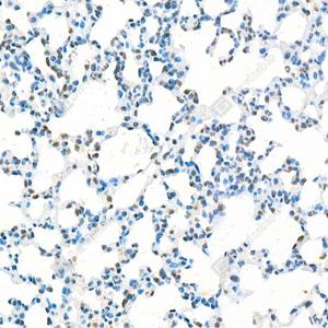 IHC检测ERCC1蛋白(货号 GB111374). 样品: 小鼠肺, 4%多聚甲醛 (货号G1101) 固定12-24小时. 抗原修复: Tris-EDTA抗原修复液(pH 9.0) (G1203), 98℃, 20分钟. —抗: 1: 1000稀释, 4℃ 孵育过夜. 二抗: HRP标记山羊抗兔IgG (H+L) (货号GB23303), 1: 200稀释, 室温孵育1小时. |