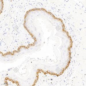 IHC检测PDRG1蛋白(货号 GB111733). 样品: 人食管, 4%多聚甲醛 (货号G1101) 固定12-24小时. 抗原修复: 柠檬酸抗原修复液(干粉, pH 6.0) (G1201), 98℃, 20分钟. —抗: 1: 300稀释, 4℃ 孵育过夜. 二抗: HRP标记山羊抗兔IgG (H+L) (货号GB23303), 1: 200稀释, 室温孵育1小时. |