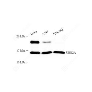 WB检测Rad6蛋白(货号 GB111539). 样品: 经RIPA裂解液(货号G2002)处理的蛋白质. 封闭: 3%脱脂牛奶(货号GC310001)溶于TBST溶液, 室温孵育1小时. —抗: 1: 500稀释, 4℃ 孵育过夜. 二抗: HRP标记山羊抗兔IgG (H+L) (货号GB23303), 1: 5000稀释, 室温孵育1小时. |