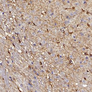 IHC检测Dicer蛋白(货号 GB11410). 样品: 大鼠脑, 4%多聚甲醛 (货号G1101) 固定12-24小时. 抗原修复: 柠檬酸抗原修复液(干粉, pH 6.0) (G1201), 98℃, 20分钟. —抗: 1: 1000稀释, 4℃ 孵育过夜. 二抗: HRP标记山羊抗兔IgG (H+L) (货号GB23303), 1: 200稀释, 室温孵育1小时. |