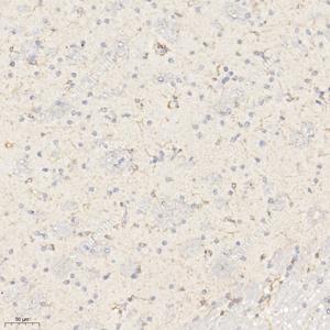 IHC检测CBS蛋白(货号 GB111794). 样品: 小鼠脑, 4%多聚甲醛 (货号G1101) 固定12-24小时. 抗原修复: 柠檬酸抗原修复液(干粉, pH 6.0) (G1201), 98℃, 20分钟. —抗: 1: 750稀释, 4℃ 孵育过夜. 二抗: HRP标记山羊抗兔IgG (H+L) (货号GB23303), 1: 200稀释, 室温孵育1小时. |