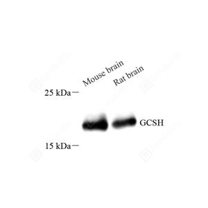 WB检测GCSH蛋白(货号 GB114523). 样品: 经RIPA裂解液(货号G2002)处理的蛋白质. 封闭: 3%脱脂牛奶(货号GC310001)溶于TBST溶液, 室温孵育1小时. —抗: 1: 2000稀释, 4℃ 孵育过夜. 二抗: HRP标记山羊抗兔IgG (H+L) (货号GB23303), 1: 5000稀释, 室温孵育1小时. |