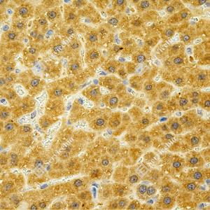 IHC检测BHMT2蛋白(货号 GB115370). 样品: 大鼠肝, 4%多聚甲醛 (货号G1101) 固定12-24小时. 抗原修复: Tris-EDTA抗原修复液(pH 9.0) (G1203), 98℃, 20分钟. —抗: 1: 1000稀释, 4℃ 孵育过夜. 二抗: HRP标记山羊抗兔IgG (H+L) (货号GB23303), 1: 200稀释, 室温孵育1小时. |