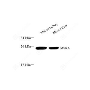 Methionine sulfoxide reductase A(MSRA), is a ubiquitous and highly conserved protein that carries out the enzymatic reduction of methionine sulfoxide to methionine.MSRA has some isoforms with MW of 19~26 kDa. MSRA functions in the repair of oxidatively damaged proteins to restore biological activity. Transfection of MSRA reduced colony formation and the invasiveness of HCC cell lines.