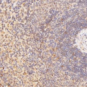 IHC检测PTS/PTPS蛋白(货号 GB114904). 样品: 大鼠脾, 4%多聚甲醛 (货号G1101) 固定12-24小时. 抗原修复: Tris-EDTA抗原修复液 (pH 9.0) (G1203), 98℃, 20分钟. —抗: 1: 800稀释, 4℃ 孵育过夜. 二抗: HRP标记山羊抗兔IgG (H+L) (货号GB23303), 1: 200稀释, 室温孵育1小时. |