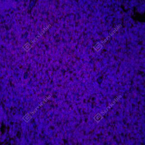 | IF检测CD45蛋白(货号 GB11066)(红色). 样品: 小鼠淋巴结+脂多糖, 4%多聚甲醛 (货号G1101) 固定12-24小时. 抗原修复: 柠檬酸抗原修复液(干粉, pH 6.0) (G1201), 高压锅均匀喷气计时2分钟. 封闭: 3% BSA(货号GC305010)的PBS溶液, 室温孵育30分钟. —抗: 1: 4000稀释, 4℃ 孵育过夜. 二抗: Cy3标记山羊抗兔IgG (H+L) (货号GB21303), 1: 300稀释, 室温孵育1小时. |