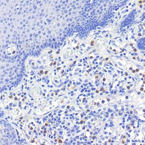 IHC检测CD11b蛋白(货号 GB125693). 样品: 人食管, 4%多聚甲醛 (货号G1101) 固定12-24小时. 抗原修复: 柠檬酸抗原修复液(干粉, pH 6.0) (G1201), 高压锅均匀喷气计时2分钟. —抗: 1: 1000稀释, 4℃ 孵育过夜. 二抗: S-vision免疫组化多聚二抗(山羊抗小鼠), 即用型(货号G1301), 室温孵育20分钟. |