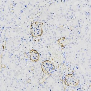 IHC检测CD10蛋白(货号 GB121122). 样品: 小鼠肾, 4%多聚甲醛 (货号G1101) 固定12-24小时. 抗原修复: 柠檬酸抗原修复液(干粉, pH 6.0) (G1201), 高压锅均匀喷气计时2分钟. —抗: 1: 1000稀释, 4℃ 孵育过夜. 二抗: HRP标记山羊抗小鼠IgG (H+L) (货号GB23301), 1: 200稀释, 室温孵育1小时. |
