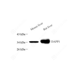 DAPP1 was identified as dual adaptor for phosphotyrosine and 3-phosphoinositides, a novel 280 amino acid protein which contains a putative myristoylation site at its N-terminus followed by a SH2 and a PH domain at its C-terminus (PMID: 10432293). DAPP1 is also referred to B cell adaptor molecule of 32 kDa (Bam32), and is expressed by B lymphocytes, but not T lymphocytes or nonhematopoietic cells. DAPP1/Bam32 was shown to regulate BCR signaling downstream of phosphatidylinositol 3-kinase (PI3K) (PMID: 10770799).
