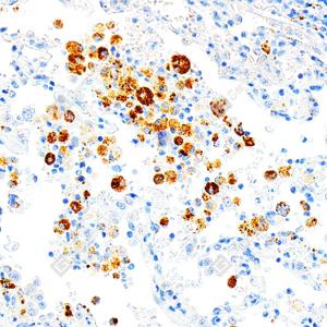 IHC检测NLRP3蛋白(货号 GB124320). 样品: 人肺癌, 4%多聚甲醛 (货号G1101) 固定12-24小时. 抗原修复: 柠檬酸抗原修复液(干粉, pH 6.0) (G1201), 高压锅均匀喷气计时2分钟. —抗: 1: 500稀释, 4℃ 孵育过夜. 二抗: S-vision免疫组化多聚二抗(山羊抗小鼠), 即用型(货号G1301), 室温孵育20分钟. |