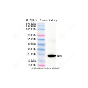 | WB检测Bax蛋白(货号 ZB15690-HRP). 样品: 经RIPA裂解液(货号G2002)处理的蛋白质. 封闭: 3% BSA(货号GC305010)的PBS溶液, 室温孵育30分钟. 抗体: HRP标记的抗Bax蛋白抗体 1: 500稀释, 4℃ 孵育过夜. |