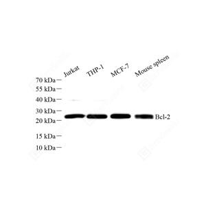 WB检测Bcl-2蛋白(货号 GB153375). 样品: 经RIPA裂解液(货号G2002)处理的蛋白质. 封闭: 3%脱脂牛奶(货号GC310001)溶于TBST溶液, 室温孵育1小时. —抗: 1: 1000稀释, 4℃ 孵育过夜. 二抗: HRP标记山羊抗兔IgG (H+L) (货号GB23303), 1: 5000稀释, 室温孵育1小时. |