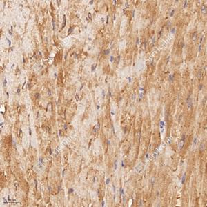 | IHC检测Bax蛋白(货号 GB114122). 样品: 小鼠心, 4%多聚甲醛 (货号G1101) 固定12-24小时. 抗原修复: 柠檬酸抗原修复液(干粉, pH 6.0) (G1201), 98℃, 20分钟. —抗: 1: 400稀释, 4℃ 孵育过夜. 二抗: HRP标记山羊抗兔IgG (H+L) (货号GB23303), 1: 200稀释, 室温孵育1小时. |
