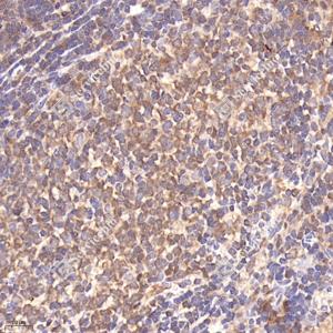 | IHC检测Bax蛋白(货号 GB114122). 样品: 大鼠脾, 4%多聚甲醛 (货号G1101) 固定12-24小时. 抗原修复: 柠檬酸抗原修复液(干粉, pH 6.0) (G1201), 98℃, 20分钟. —抗: 1: 400稀释, 4℃ 孵育过夜. 二抗: HRP标记山羊抗兔IgG (H+L) (货号GB23303), 1: 200稀释, 室温孵育1小时. |