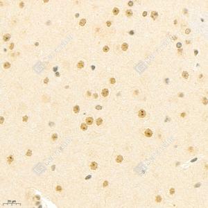 IHC检测Daxx蛋白(货号 GB11754). 样品: 小鼠脑, 4%多聚甲醛 (货号G1101) 固定12-24小时. 抗原修复: 柠檬酸抗原修复液(干粉, pH 6.0) (G1201), 98℃, 20分钟. —抗: 1: 1500稀释, 4℃ 孵育过夜. 二抗: HRP标记山羊抗兔IgG (H+L) (货号GB23303), 1: 200稀释, 室温孵育1小时. |