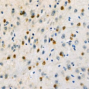 | IHC检测BTF蛋白(货号 GB111962). 样品: 小鼠脑, 4%多聚甲醛 (货号G1101) 固定12-24小时. 抗原修复: 柠檬酸抗原修复液(干粉, pH 6.0) (G1201), 98℃, 20分钟. —抗: 1: 2000稀释, 4℃ 孵育过夜. 二抗: HRP标记山羊抗兔IgG (H+L) (货号GB23303), 1: 200稀释, 室温孵育1小时. |
