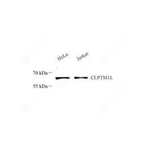 WB检测CLPTM1L蛋白(货号 GB114176). 样品: 经RIPA裂解液(货号G2002)处理的蛋白质. 封闭: 封闭: 3%脱脂牛奶(货号GC310001)溶于TBST溶液, 室温孵育1小时. —抗: 1: 600稀释, 4℃ 孵育过夜. 二抗: HRP标记山羊抗兔IgG (H+L) (货号GB23303), 1: 5000稀释, 室温孵育1小时. |