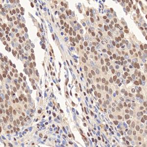 IHC检测ANP32C/PP32R1蛋白(货号 GB114550). 样品: 人子宫内膜癌, 4%多聚甲醛 (货号G1101) 固定12-24小时. 抗原修复: 柠檬酸抗原修复液(干粉, pH 6.0) (G1201), 98℃, 20分钟. —抗: 1: 1000稀释, 4℃ 孵育过夜. 二抗: HRP标记山羊抗兔IgG (H+L) (货号GB23303), 1: 200稀释, 室温孵育1小时. |