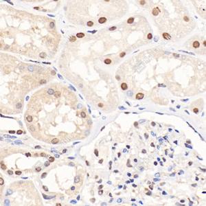 IHC检测ANP32C/PP32R1蛋白(货号 GB114550). 样品: 人肾, 4%多聚甲醛 (货号G1101) 固定12-24小时. 抗原修复: 柠檬酸抗原修复液(干粉, pH 6.0) (G1201), 98℃, 20分钟. —抗: 1: 1000稀释, 4℃ 孵育过夜. 二抗: HRP标记山羊抗兔IgG (H+L) (货号GB23303), 1: 200稀释, 室温孵育1小时. |
