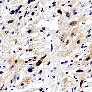IHC检测FIF蛋白(货号 GB112298). 样品: 人肝癌, 4%多聚甲醛 (货号G1101) 固定12-24小时. 抗原修复: 柠檬酸抗原修复液(干粉, pH 6.0) (G1201), 98℃, 20分钟. —抗: 1: 350稀释, 4℃ 孵育过夜. 二抗: HRP标记山羊抗兔IgG (H+L) (货号GB23303), 1: 200稀释, 室温孵育1小时. |