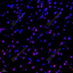 IF检测UBP43蛋白(货号 GB111923)(红色). 样品: 小鼠脑, 4%多聚甲醛 (货号G1101) 固定12-24小时. 抗原修复: Tris-EDTA抗原修复液(pH 9.0) (G1203), 98℃, 20分钟. 封闭: 3% BSA(货号GC305010)的PBS溶液, 室温孵育30分钟. —抗: 1: 1000稀释, 4℃ 孵育过夜. 二抗: Cy3标记山羊抗兔IgG (H+L) (货号GB21303), 1: 300稀释, 室温孵育1小时. |