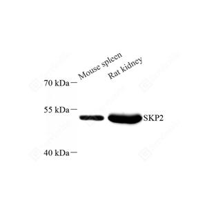 SKP2(S-phase kinase-associated protein 2) is also named as FBXL1 and belongs to the F-box family. It regulates cellular proliferation by targeting several cell cycle-regulated proteins for ubiquitination and degradation, including cyclin-dependent kinase inhibitor CDKN1B(PMID:22200179). The acetylation of SKP2 in the nuclear localization signal (NLS) can promote its cytoplasmic retention, and cytoplasmic SKP2 enhances cellular migration through ubiquitination and destruction of CDH. This protein has 3 isoforms produced by alternative splicing.